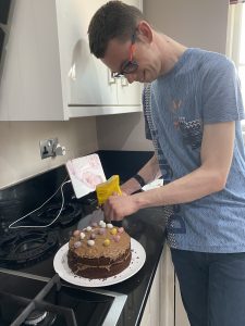 Ben baking an Easter cake, and even washing up!! Well, putting everything in the dishwasher!!!